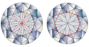 The Term Hearts And Arrows Relates To A Stone Having Perfect Proportions And Symmetry. When Perfectly Polished, The Diamond Displays Heart Shaped Reflections When Looking From The Pavilion (Diagram 1) And Arrow Shaped Reflections When Looking From The Table (Diagram 2)