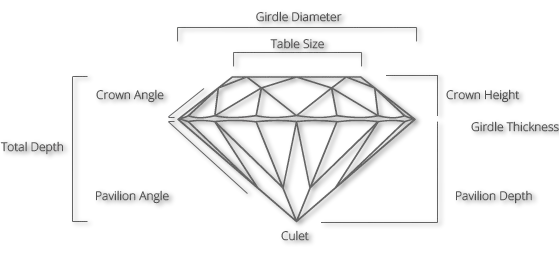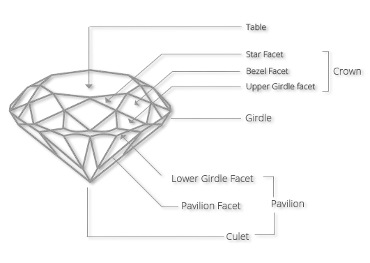 A Polished Diamond Has 57 Facets And The Culet (The Tiny Facet Or Point At The Base Of The Pavilion) The Culet May Vary In Size That In Turn Can Impact The Brilliance Of The Polished Stone, So We Grade The Culet From Pointed (Excellent) To Chipped.